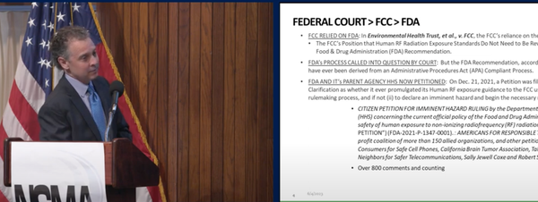 (Screengrab of Joe Sandri presentation @ National Spectrum Management Association) IN FOCUS: Environmental Health Trust Pens Tough Petition to Govt. On Outdated RF Limits In a petition dated Aug. 19 to Health and Human Services Secretary Robert F. Kennedy Jr., and to both the Food and Drug Administration Commissioner Martin Makary, and Federal Communications Commission Chairman Brendan Carr, EHT